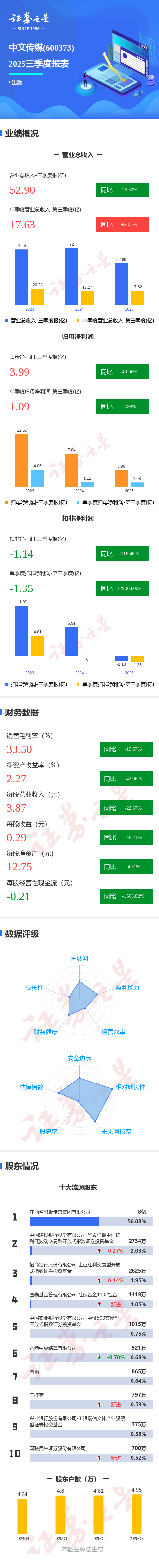 图解中文传媒三季报:第三季度单季净利润同比下降2.99%