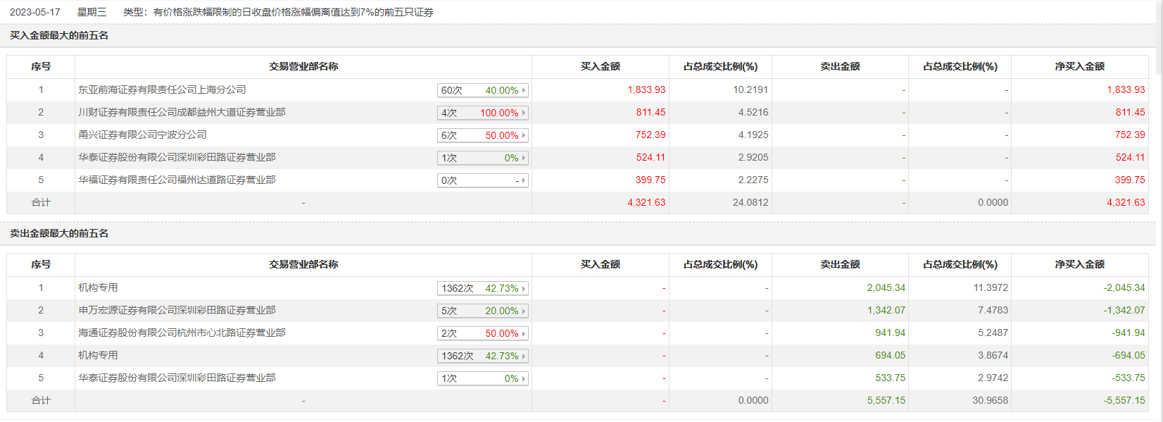 具体来看,机构合计净卖出2739.39万元。此外,东亚前海证券上海分公司、川财证券成都益州大道证券营业部分别买入1833.93万元、811.45万元;申万宏源证券有限公司深圳彩田路证券营业部、海通证券杭州市心北路证券营业部分别卖出1342.07万元、941.94万元。