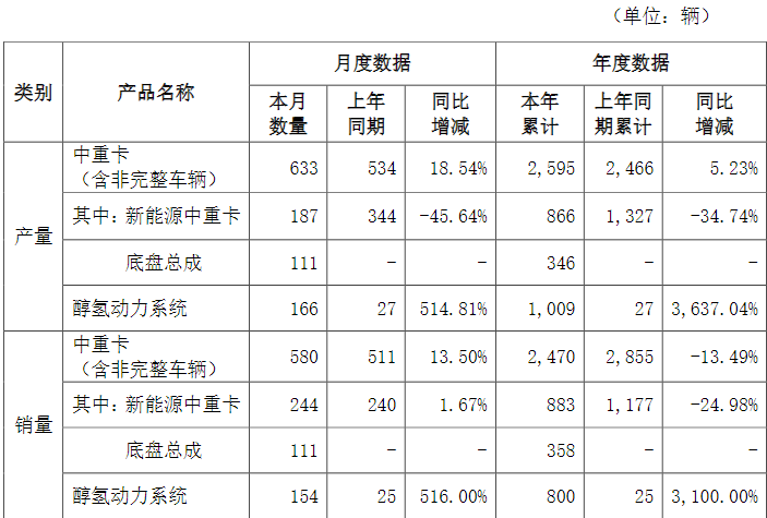 6月9日公告,前5月中重卡销量合计2470辆,同比下滑13.49%。