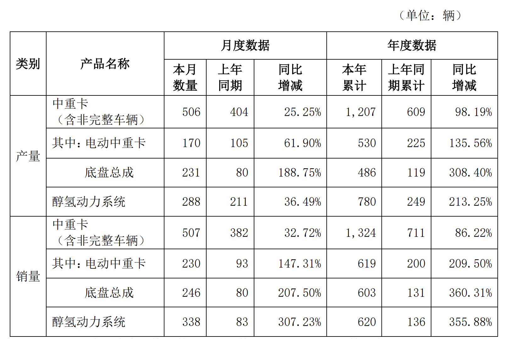 3月1日发布2月份产销快报,2月中重卡销量为507辆,同比增长32.72%;本年中重卡累计销量