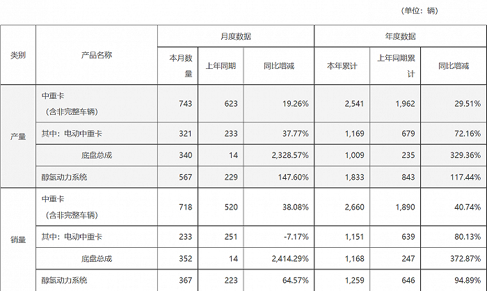 5月6日公告,公司前4月中重卡销量2660辆,同比上涨40.74%。