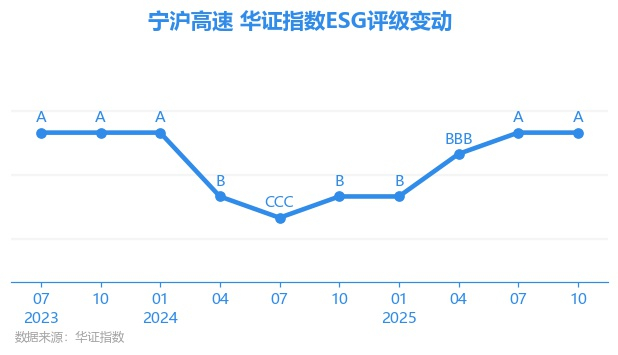 日前,华证指数公布了新一期(2025年10月31日)的ESG评级结果,宁沪高速(600377.SH)获得A评级(华证指数评级为C起至AAA九档,C为最低档,AAA为其最高一级评级/AA为其第二档),上一期(2025年7月31日)ESG评级为A。本期ESG评级在45家交通基本设施行业A股上市公司中排名第5(上一期排名第4)。