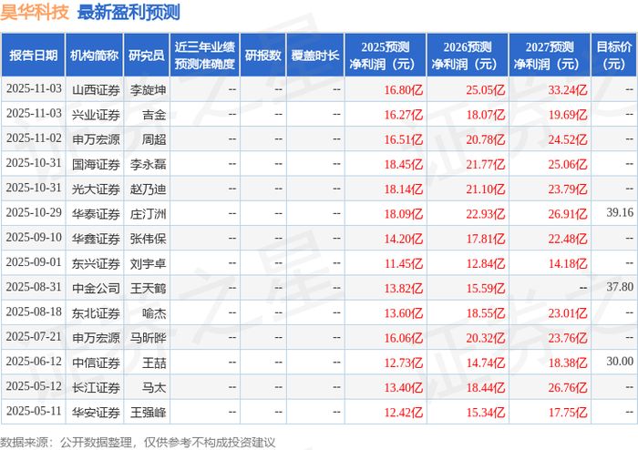 最新盈利预测明细如下: