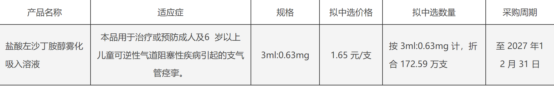 健康元:盐酸左沙丁胺醇雾化吸入溶液在全国药品集中采购中拟中选
