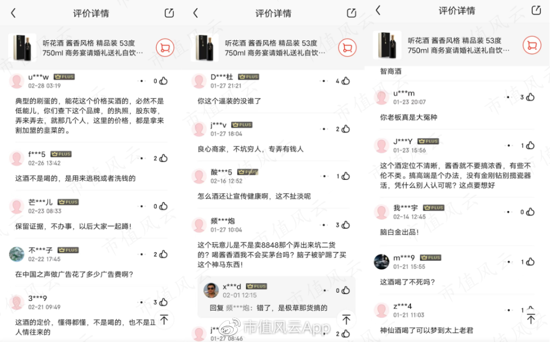 好奇害死猫,风云君实在没忍住好奇心,就跑去京东旗舰店瞻仰一下够资格喝这款酒的都是什么人中龙凤,没想到差点笑死在评论区:刷单的、逃税的、洗钱的、扯淡的、求太上老君托梦的……