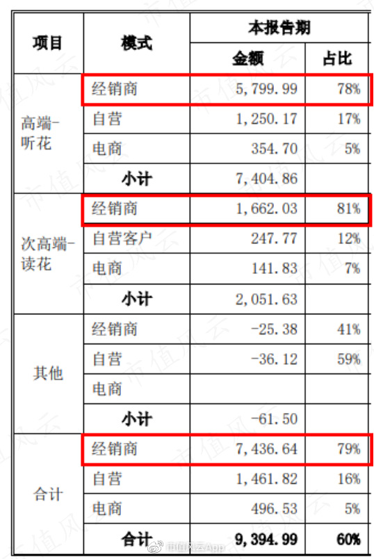青海春天称,其酒水销售以自营加经销商为主、电商为辅的模式销售,其中经销商占比近八成。