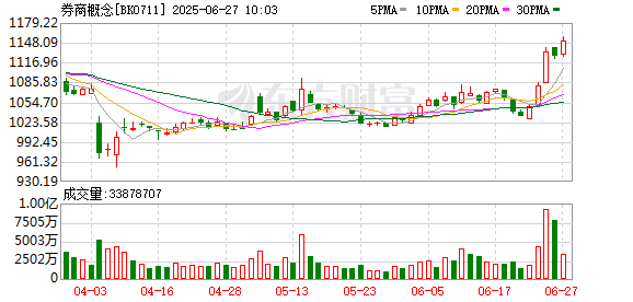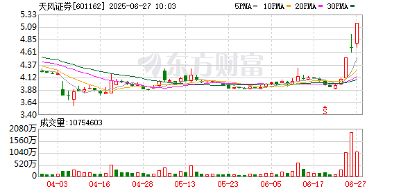 券商股盘中拉升 天风证券涨停 五矿资本、华西证券涨逾6%