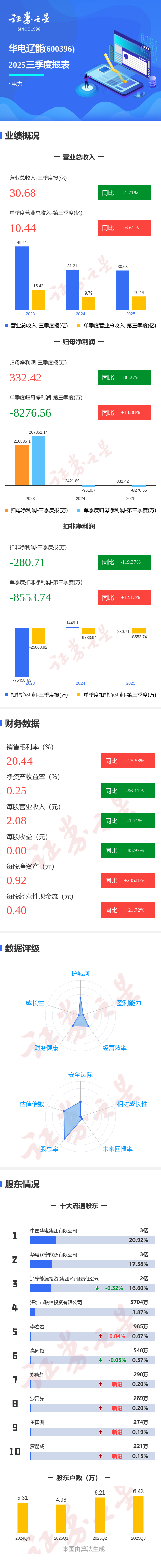 图解华电辽能三季报:第三季度单季净利润同比增长13.88%