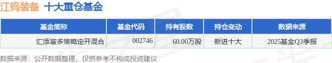 持有江钨装备最多的基金为汇添富多策略定开混合,目前规模为1.95亿元,最新净值1.677(10月29日),较上一交易日上涨1.21%,近一年上涨6.56%。该基金现任基金经理为赵鹏飞。