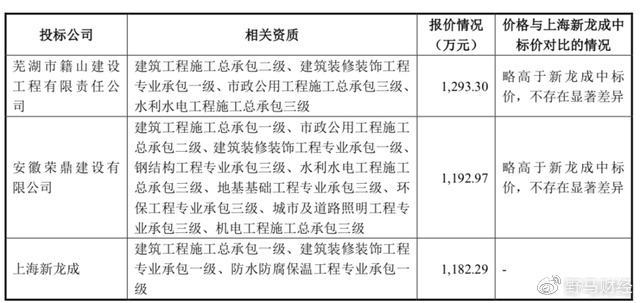 相关工程采购过程中,共有三家公司参与招投标,2020年上海新龙成报价最低,和第二名仅10万元之差。2021年上海新龙成报价居中,为第二名。