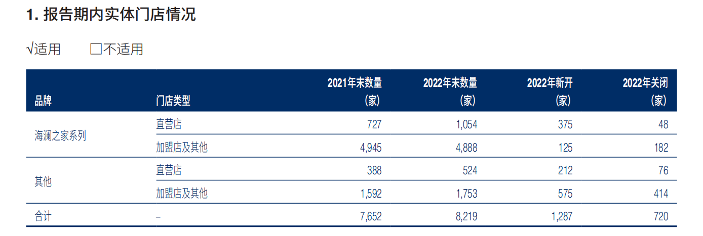 线下方面,调整终端门店结构,提升购物中心、百货商超门店布局,调优商业步行街店选址。同时创新开展企业微信号试点工作,以一店一号方式,打造线下会员体系,把握私域流量。报告期内,全国门店数8219家,直营店数1578家,线下实现营收150.49亿元。其中,海澜之家主品牌门店数5942家,直营店数1054家,净增327家。
