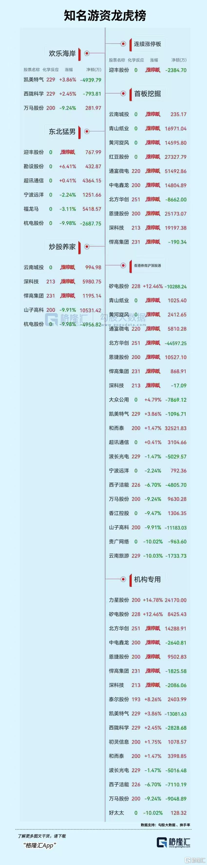 东北猛男:净买入福龙马5419万元、超讯通信4364万元,净卖出杭电股份2688万元