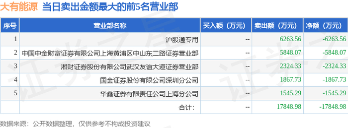 12月4日大有能源(600403)龙虎榜数据:北向资金净卖出4386.08万元
