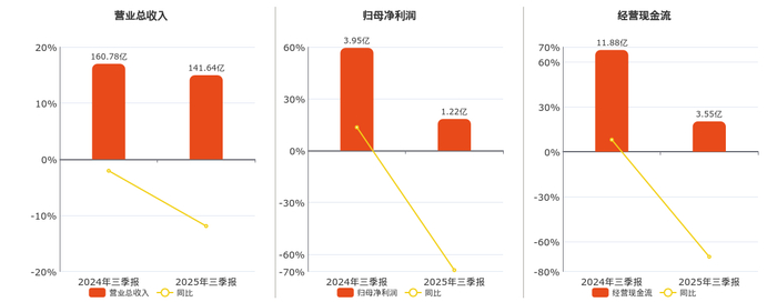 三友化工(600409.SH):2025年三季报净利润为1.22亿元、同比较去年同期下降69.18%