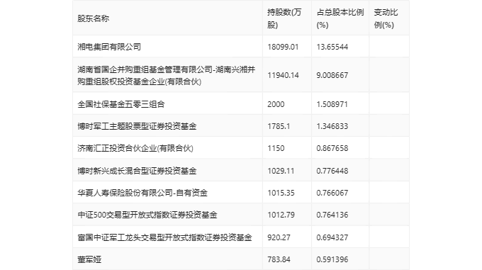 一季报显示,2024年一季度末公司十大流通股东中,新进股东为济南汇正投资合伙企业(有限合伙)、中证500交易型开放式指数证券投资基金、董军娅,取代了上年末的中欧时代先锋股票型发起式证券投资基金、博时汇兴回报一年持有期灵活配置混合型证券投资基金、中欧新蓝筹灵活配置混合型证券投资基金。在具体持股比例上,全国社保基金五零三组合、富国中证军工龙头交易型开放式指数证券投资基金持股有所下降。