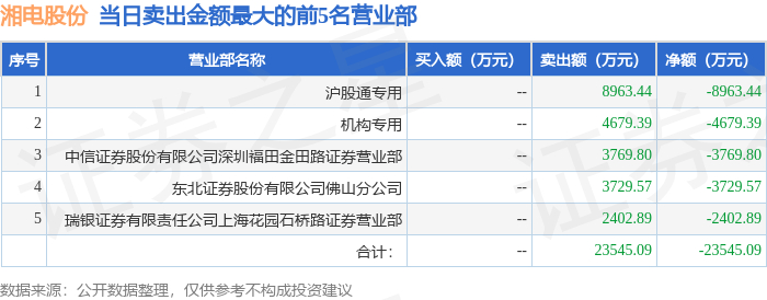 11月7日湘电股份(600416)龙虎榜数据:机构净卖出4679.39万元,北向资金净卖出2621.73万元