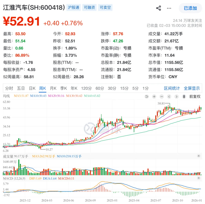 值得注意的是,不少分析中提到,若剔除大众安徽投资收益亏损影响,江淮汽车2025年度扣非净利润为-13.9亿元,结合其前三季度扣非净利润-17.6亿元