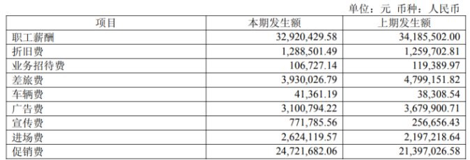 费用端方面,报告期内,公司销售费用和管理费用分别同比增长3.07%和3.38%。具体来看销售费用的构成,促销费用以2472.17万元的规模,在各项支出中仅次于职工薪酬,且这一费用同比增幅显著,达到15.54%,侧面反映出,行业竞争加剧背景下,公司为抢占市场份额、维持产品动销,加大终端促销投入。