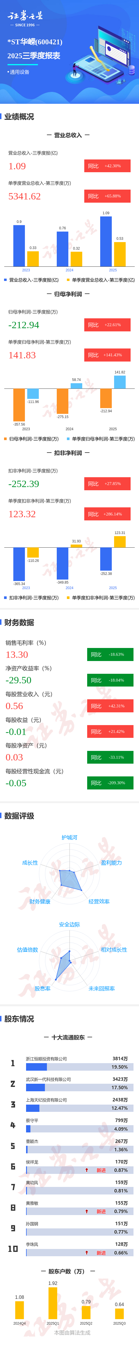图解*ST华嵘三季报:第三季度单季净利润同比增长141.43%