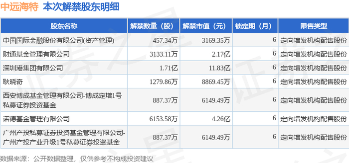中远海特(600428)2.99亿股限售股将于9月19日解禁,占总股本10.88%