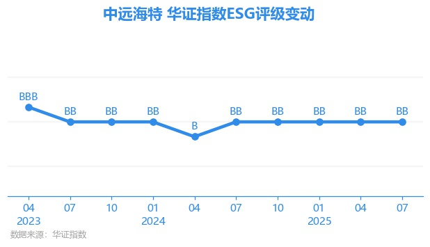日前,华证指数公布了新一期(2025年7月31日)的ESG评级结果,中远海特(600428.SH)获得BB评级(华证指数评级为C起至AAA九档,C为最低档,AAA为其最高一级评级/AA为其第二档),上一期(2025年4月30日)ESG评级为BB。本期ESG评级在14家海上运输行业A股上市公司中排名第8(上一期排名第9)。