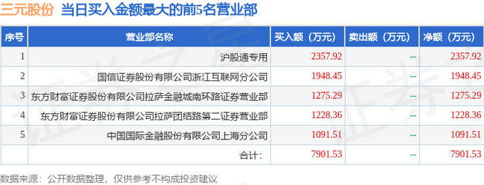 11月14日三元股份(600429)龙虎榜数据:机构净卖出1547.71万元,北向资金净买入2357.92万元