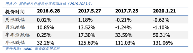 根据国盛证券研究所的报告,从提价后的半年内,片仔癀的股价变化趋势可以看出,近年来历次提价对公司股价有拉动和促进作用: