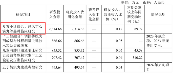 同仁堂也存在研发投入不足的问题,近三年来其每年的研发费用在2.1亿-2.8亿元,仅占营收的1.5%-2%。以2024年为例,公司主要研发方向多集中于复方小活络丸等传统品种的工艺改进或安全性再评价,在创新药等领域的布局寥寥。