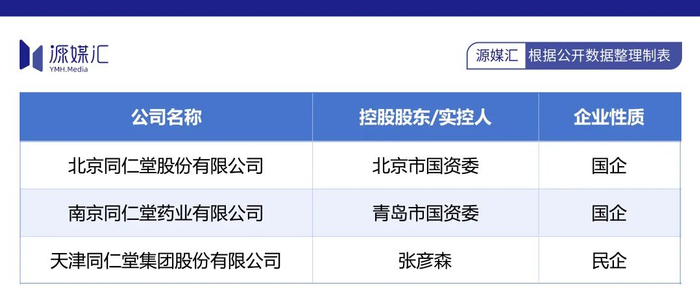 源媒汇通过天眼查股权穿透后发现,北京同仁堂、南京同仁堂和天津同仁堂分属不同主体:北京同仁堂由北京市国资委控股,属国有企业;南京同仁堂实控人为青岛市国资委,亦是国有企业;天津同仁堂则由自然人张彦森控制,为民营企业。三者股权、实控人及企业性质均存在明显差异,这也进一步加剧了消费者对“同仁堂系”品牌的认知混乱。