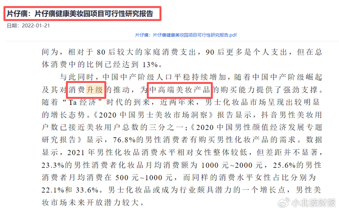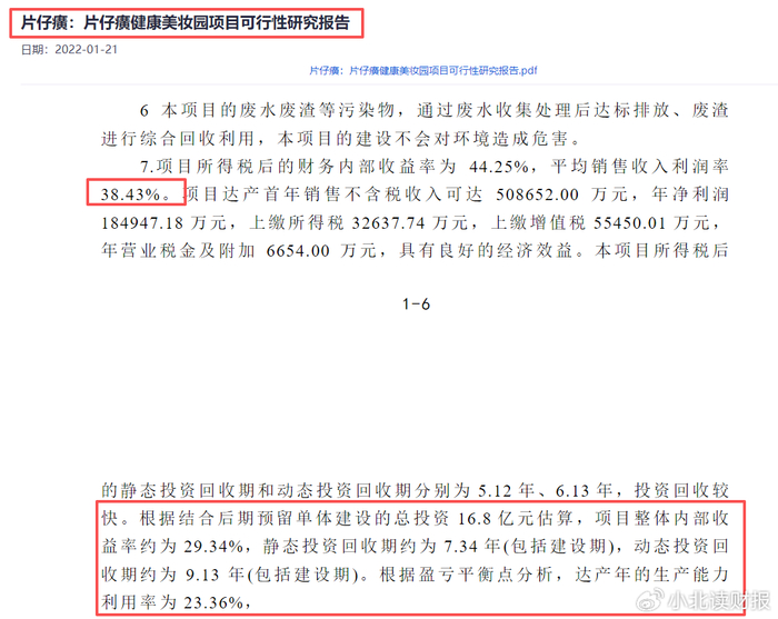 从片仔癀2022年公布的美妆园项目可行性分析报告看,当时该项目被寄予很好的预期,比如: