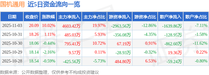 11月3日的资金流向数据方面,主力资金净流入4603.42万元,占总成交额19.97%,游资资金净流出2963.56万元,占总成交额12.86%,散户资金净流出1639.86万元,占总成交额7.11%。