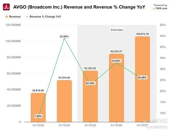 华尔街预测,博通每新增1GW算力产能,就能额外获得200亿美元收入。按此推算,到2029年,该公司通过此类合作最多可新增2000亿美元收入。相关产能预计将于2026年下半年开始初步部署,显然两家公司都将在相对较短的时间内加快建设进度。若执行过程完美推进,与博通目前的收入节奏相比,这一增长无疑是史无前例的。