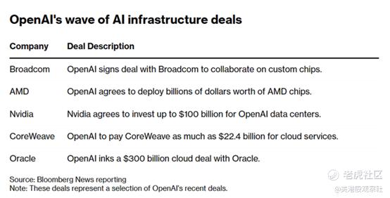 以下是OpenAI近期与半导体设计商及新兴云服务商达成的合作协议汇总。这些数字十分惊人,因为我们从未见过如此庞大的产能以这样的速度和力度被敲定。