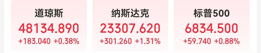 当地时间12月19日,美股三大指数集体收涨,道指涨0.38%,纳指涨1.31%,标普500指数涨0.88%。