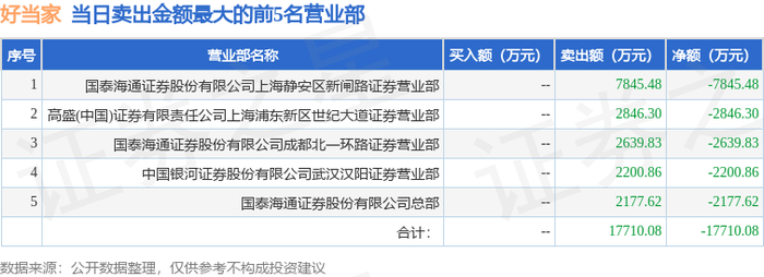 11月20日好当家(600467)龙虎榜数据:游资上海超短帮上榜