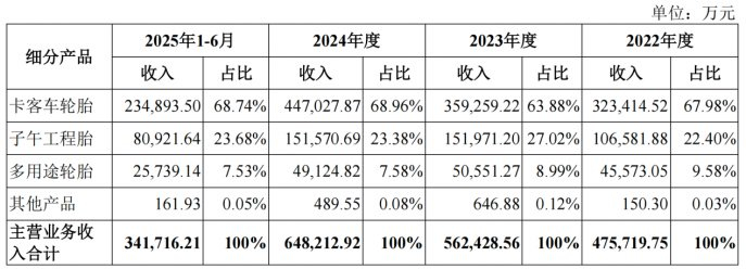 从业务结构来看,卡客车轮胎仍是公司营收主力,报告期内实现收入23.49亿元,占比68.74%;子午工程胎收入8.09亿元,占比23.68%;多用途轮胎收入2.57亿元,占比7.53%。值得注意的是,受原材料成本上升影响,各产品线毛利率均较2024年出现下滑,分别为11.30%、28.09%和4.76%。