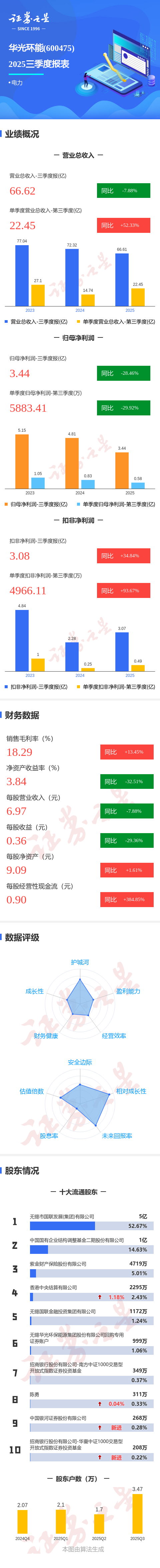 图解华光环能三季报:第三季度单季净利润同比下降29.92%