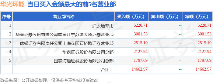 11月3日华光环能(600475)龙虎榜数据:北向资金净买入1325.39万元