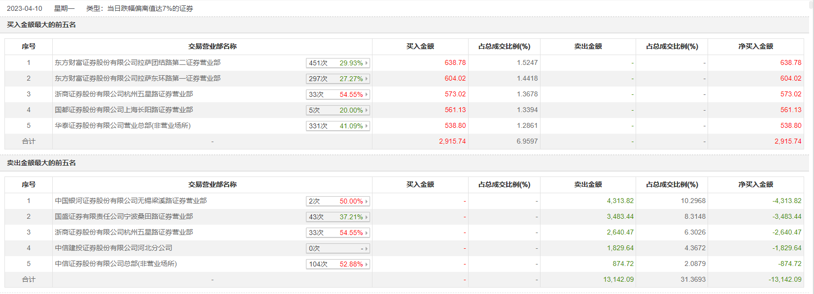 4月10日,湘邮科技今日跌停,龙虎榜数据显示,上榜营业部席位全天成交1.61亿元,占当日总成交金额比例为38.33%。其中,买入金额为2915.74万元,卖出金额为1.31亿元,合计净卖出1.02亿元。