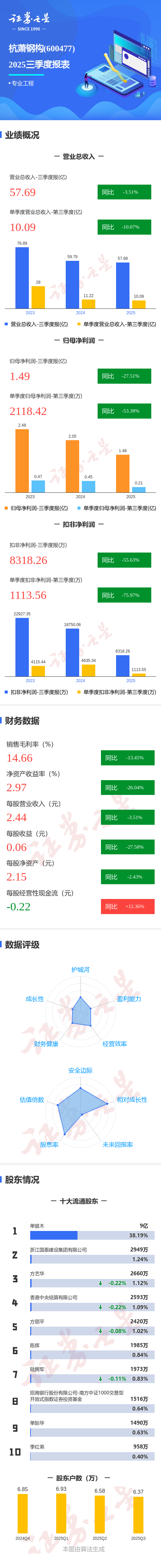 图解杭萧钢构三季报:第三季度单季净利润同比下降53.38%