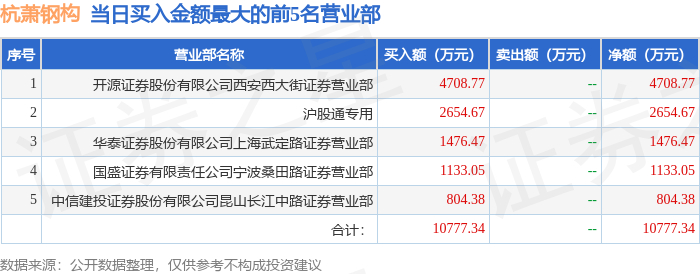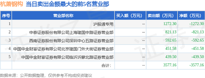 12月29日杭萧钢构(600477)龙虎榜数据:游资宁波桑田路上榜