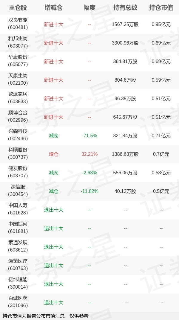 证券之星消息,10月28日光大保德信基金旗下黄波管理的光大保德信信用添益债券型基金公布三季报,近1年净值增长率29.34%。与上一季度相比,该基金前十大重仓股新增双良节能,和邦生物,华康股份,天康生物,欧派家居,顺博合金;其中双良节能持仓占比1.57%,为该基金第一大重仓股;中国人寿,中国银河,索通发展,通策医疗,亿纬锂能,百诚医药等退出前十大重仓股;详细数据如下: