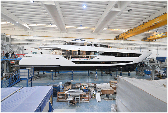 当地时间9月11日,谭旭光在意大利马尔凯大区首府安科纳市,调研潍柴集团旗下法拉帝集团超级游艇生产制造基地安科纳工厂,详细了解了近几年CRN、CUSTOM LINE游艇生产情况。
