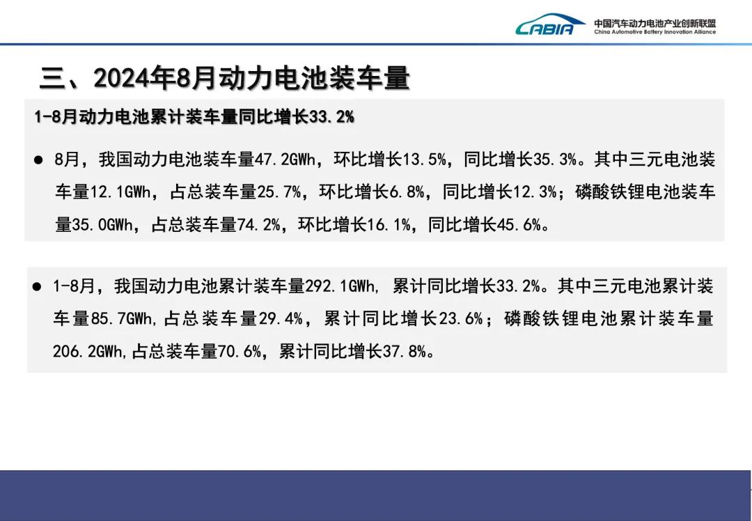 2024年9月10日,中国汽车动力电池产业创新联盟发布2024年8月中国动力和储能电池月度数据。