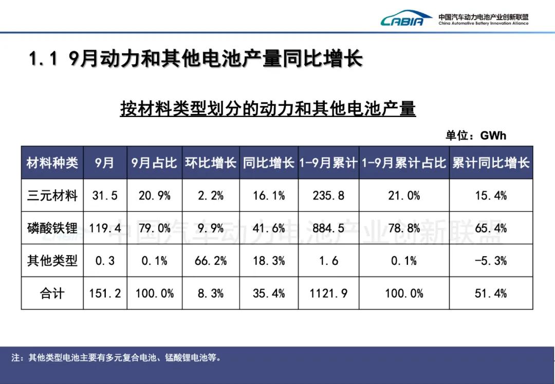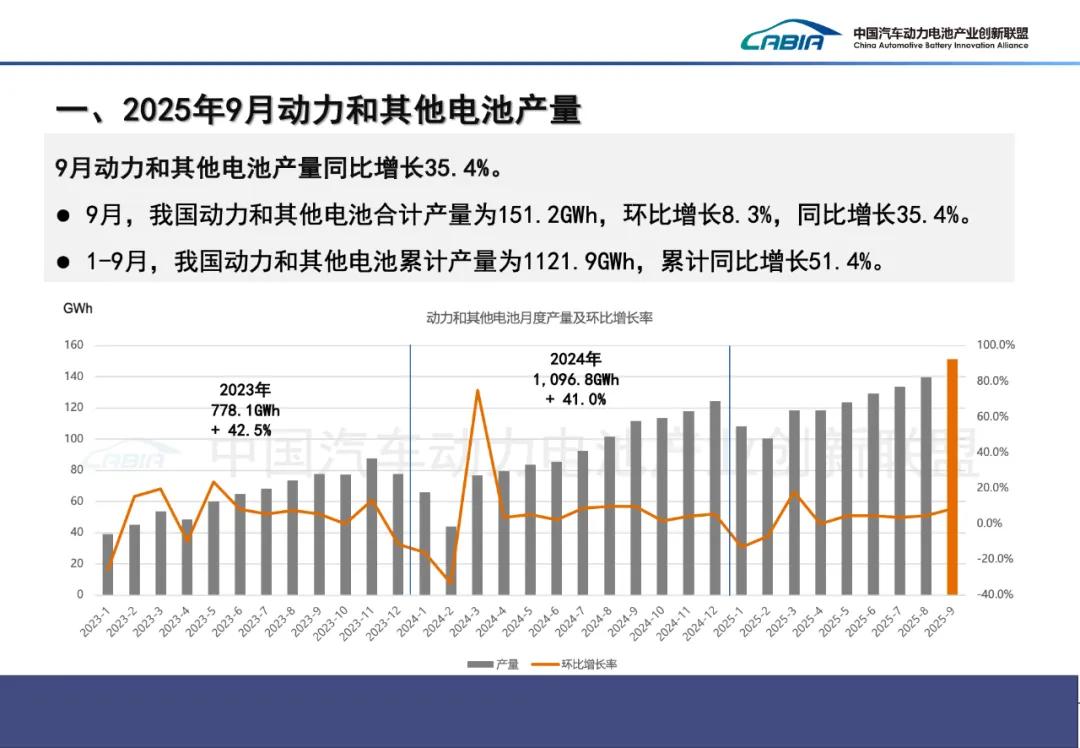 1-9月,我国动力和其他电池累计产量为1121.9GWh,累计同比增长51.4%。