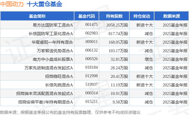 根据2025基金年报公募基金重仓股数据,重仓该股的公募基金共12家,其中持有数量最多的公募基金为易方达基金的易方达国防军工混合A。易方达国防军工混合A目前规模为72.81亿元,最新净值1.949(3月3日),较上一交易日下跌5.43%,近一年上涨51.2%。该公募基金现任基金经理为何崇恺。何崇恺在任的基金产品包括:易方达积极成长混合,管理时间为2021年5月29日至今,期间收益率为66.69%;易方达竞争优势企业混合A,管理时间为2025年6月21日至今,期间收益率为37.11%。