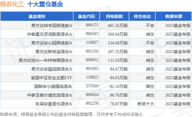 重仓扬农化工的前十大公募基金请见下表: