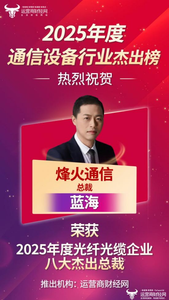 烽火通信总裁蓝海凭借过去一年在企业经营中的优异表现,成功入选“2025年度光纤光缆企业八大杰出总裁”。