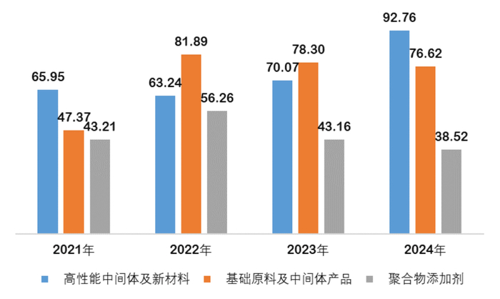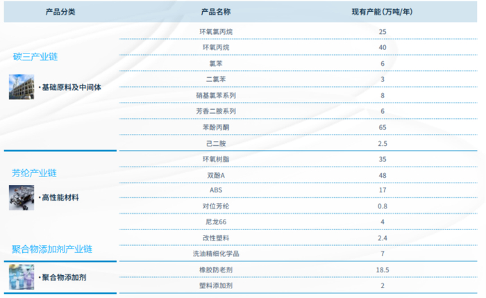 中化国际化工新材料产业目前主要由碳三、芳纶和聚合物添加剂三条链组成,分别对应基础原料及中间体、高性能材料、聚合物添加剂三类主要产品。