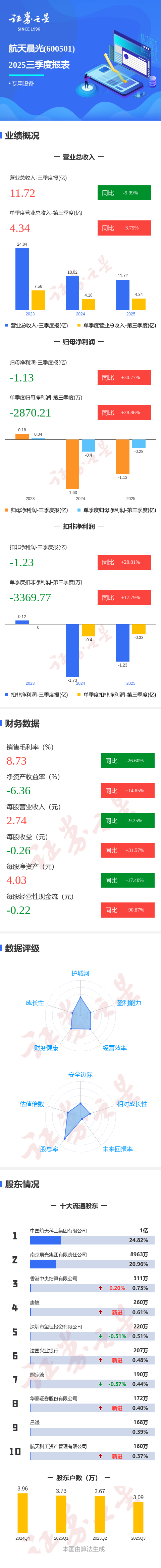 图解航天晨光三季报:第三季度单季净利润同比增长28.86%